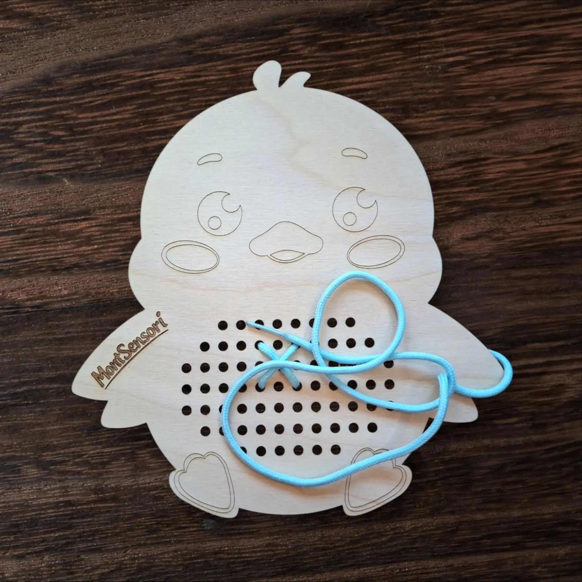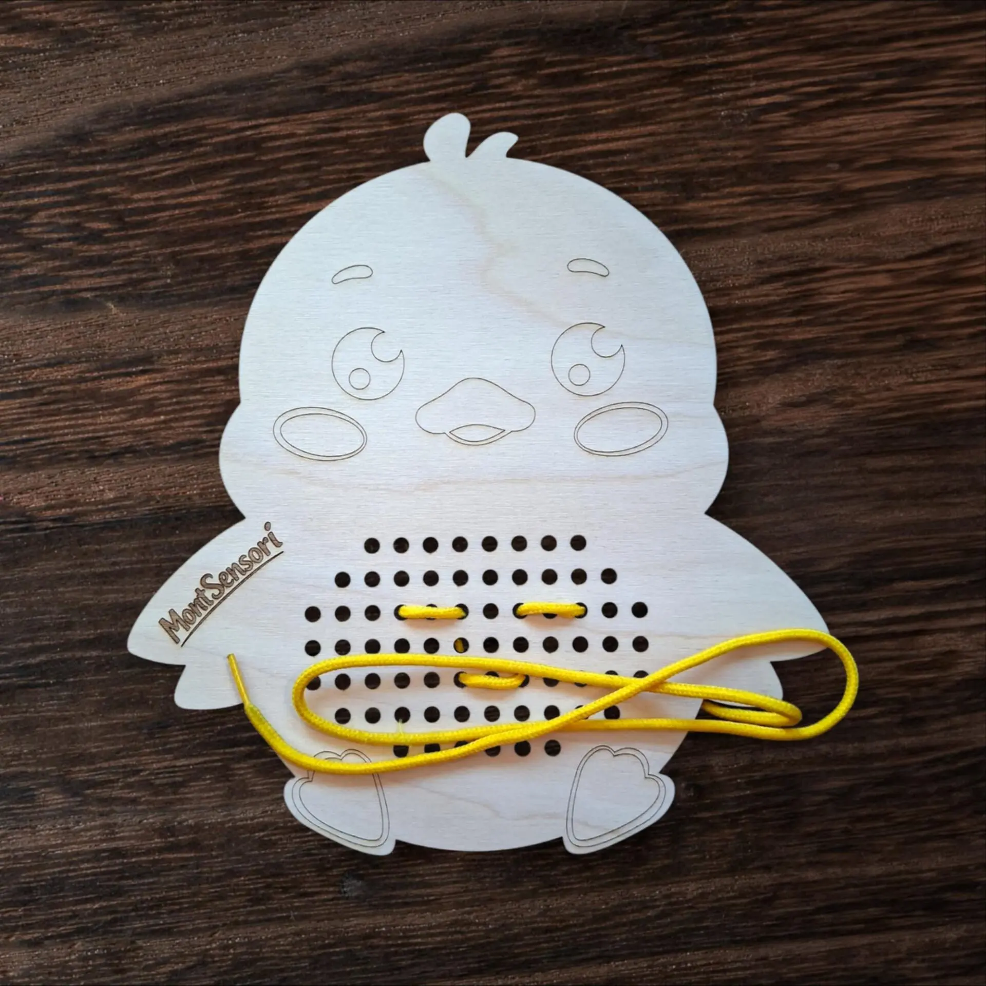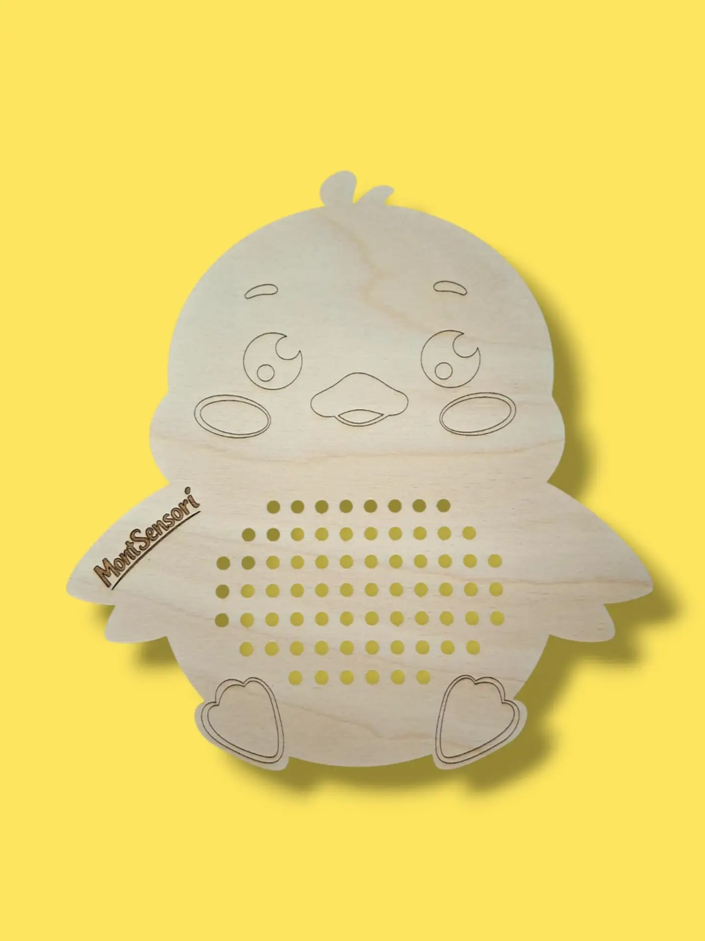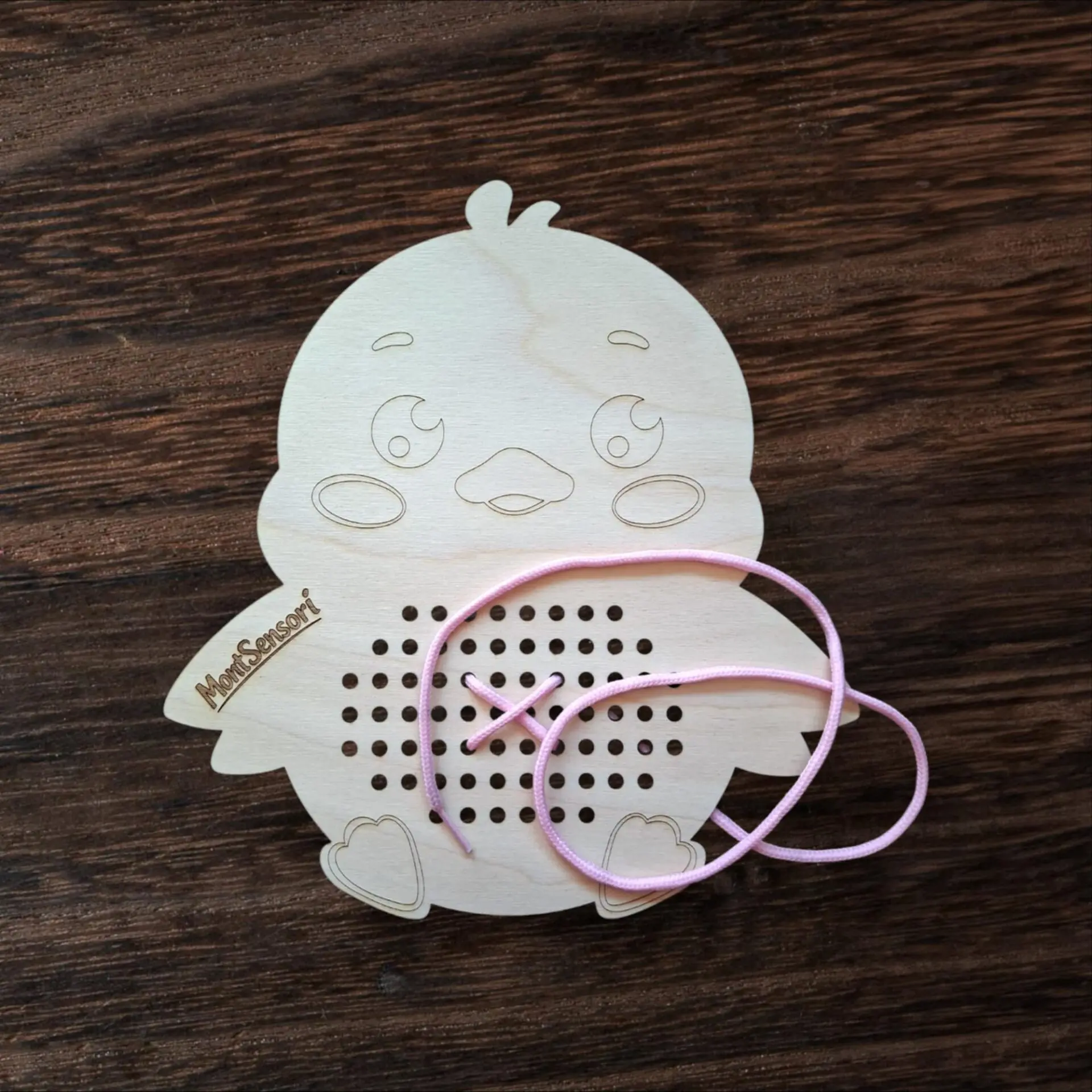 Fa fűzögetős fejlesztő játék – Csibe alakban 24 cm