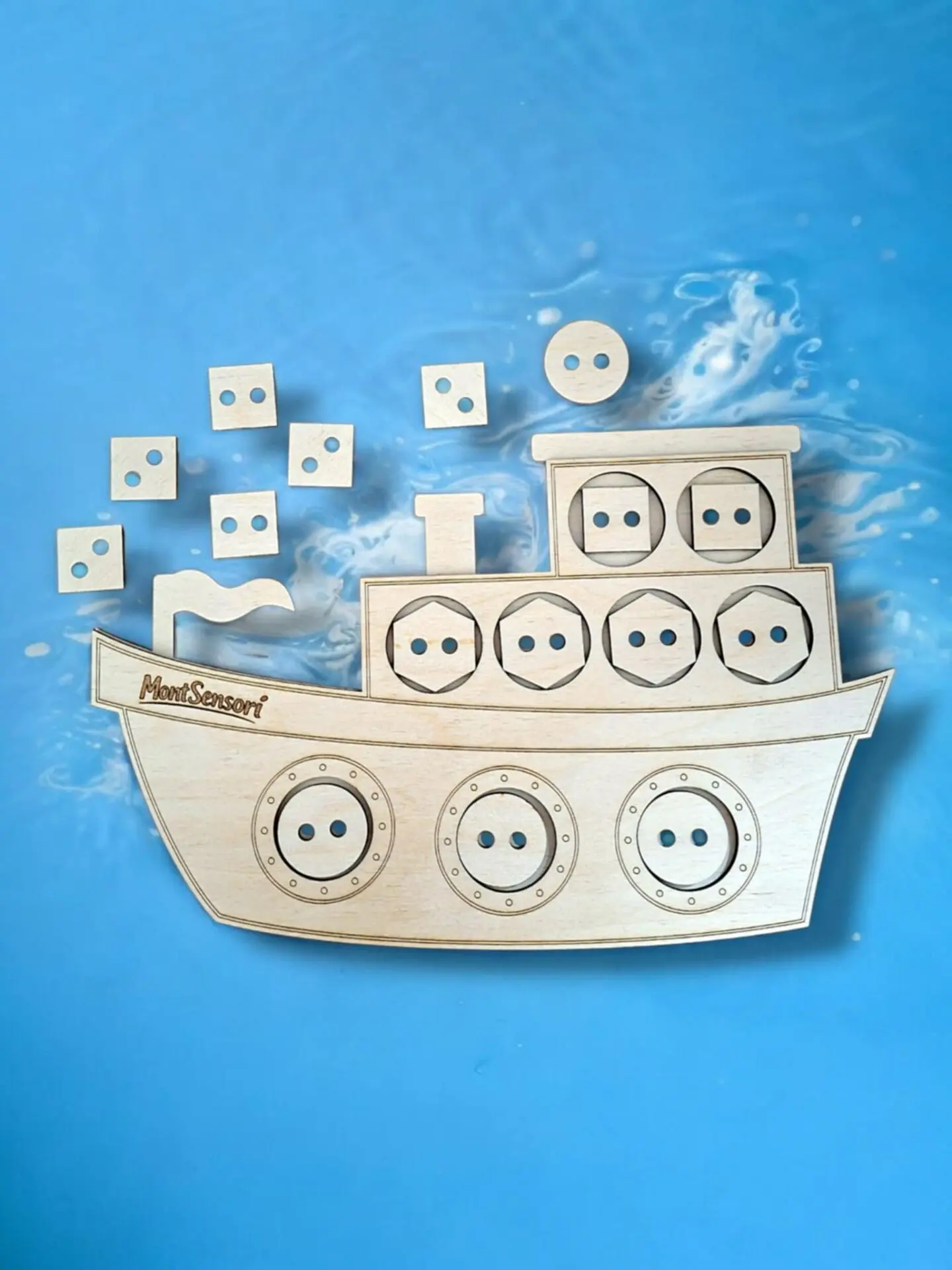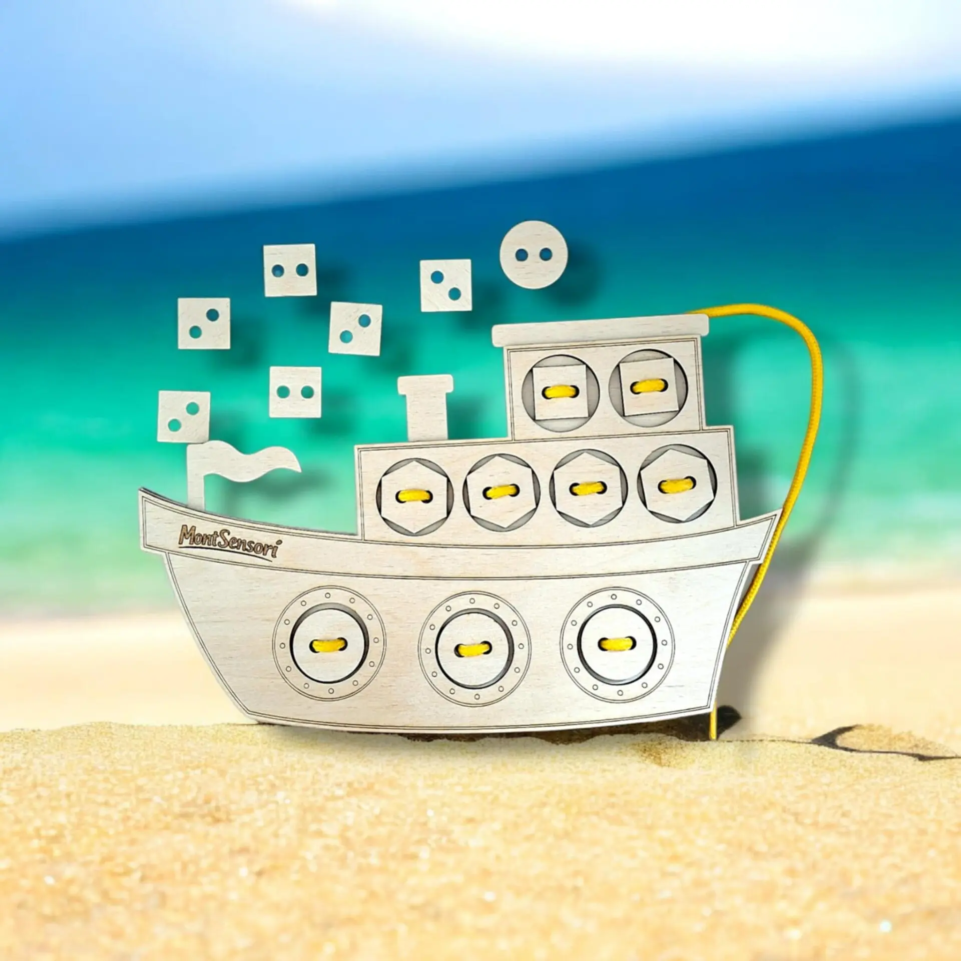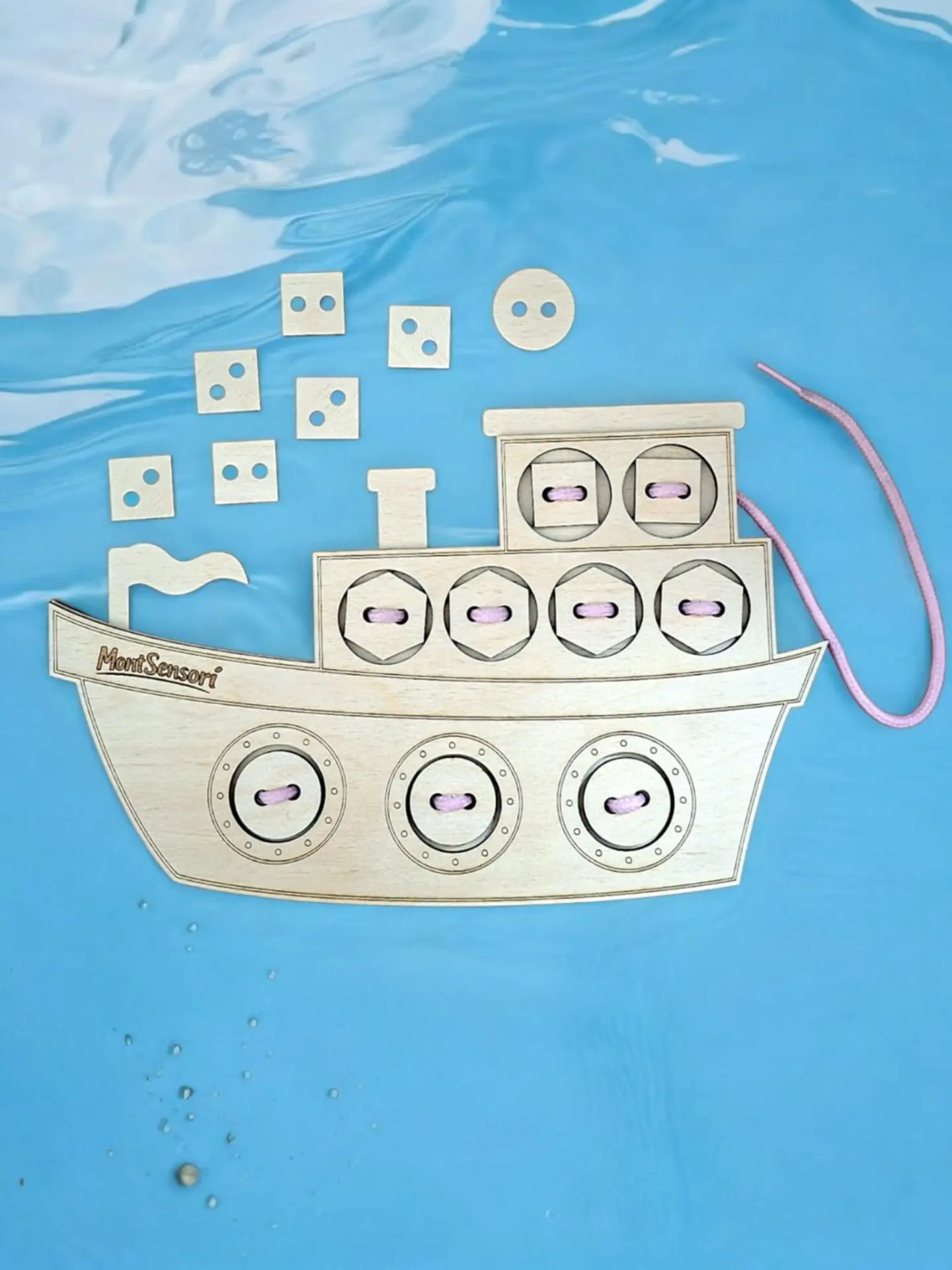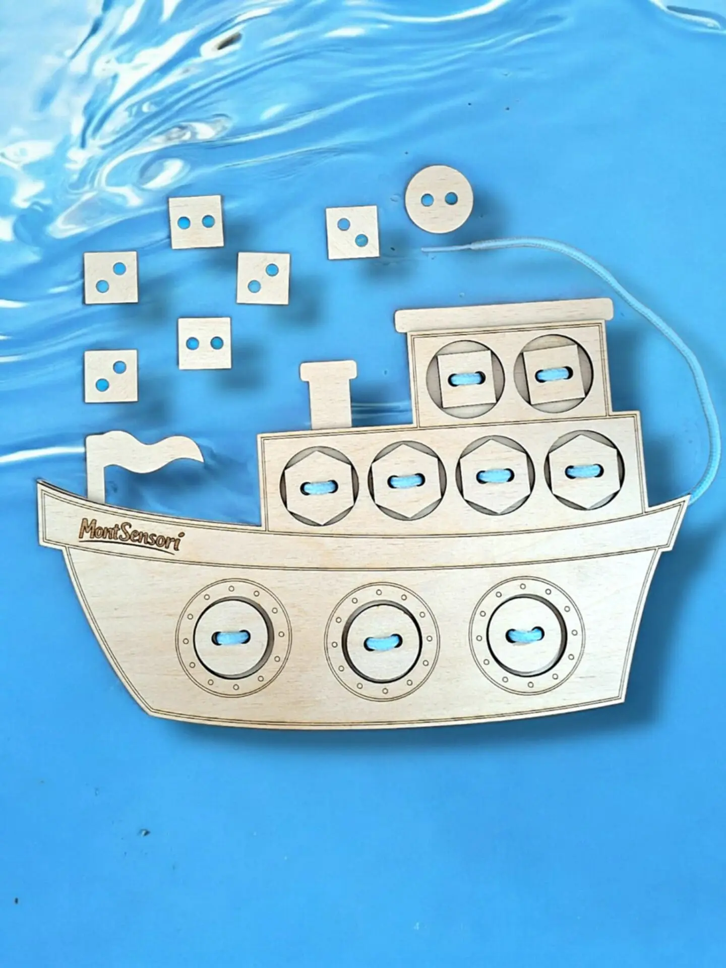 🧠 Fa fűzögetős fejlesztő játék –Hajó alakban