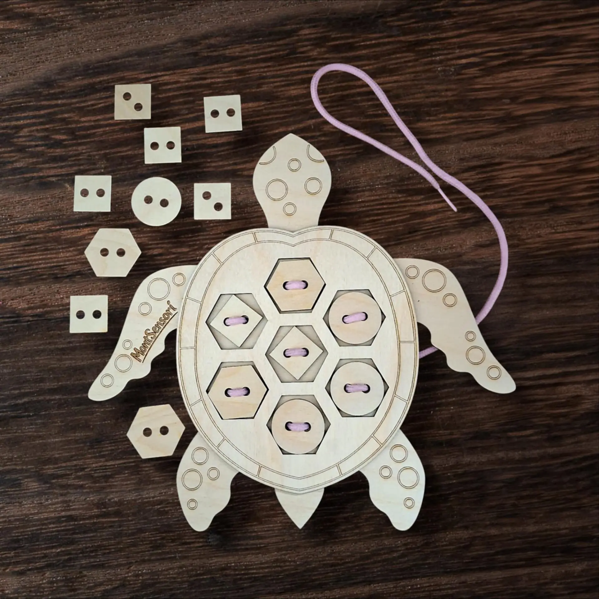 🧠 Fa fűzögetős fejlesztő játék –Teknős alakban