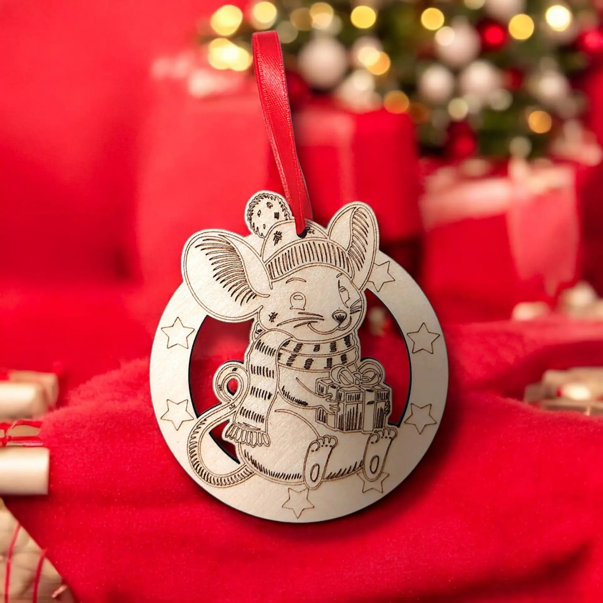 Ez a bájos egeres fa karácsonyfadísz valódi ünnepi kedvenc lehet az otthonodban! A részletgazdag, lézervágott minta egy csintalan kis egeret jelenít meg, amely garantáltan mosolyt csal mindenki arcára. Könnyű, tartós anyagból készült, így évről évre újra felakasztható – akár emlékként, akár kedves ajándékkísérőként.