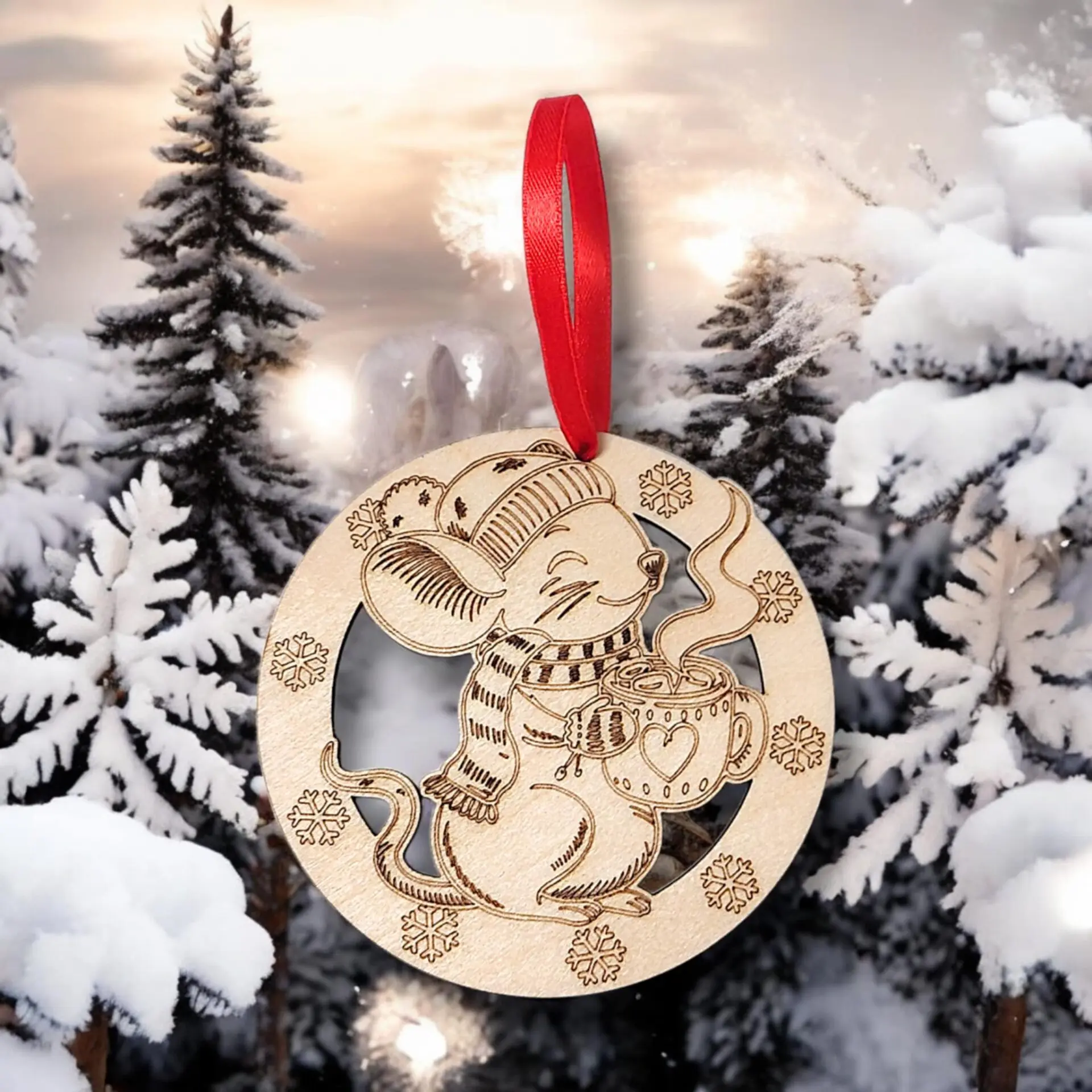 Ez a bájos egeres fa karácsonyfadísz valódi ünnepi kedvenc lehet az otthonodban! A részletgazdag, lézervágott minta egy csintalan kis egeret jelenít meg, amely garantáltan mosolyt csal mindenki arcára. Könnyű, tartós anyagból készült, így évről évre újra felakasztható – akár emlékként, akár kedves ajándékkísérőként.
