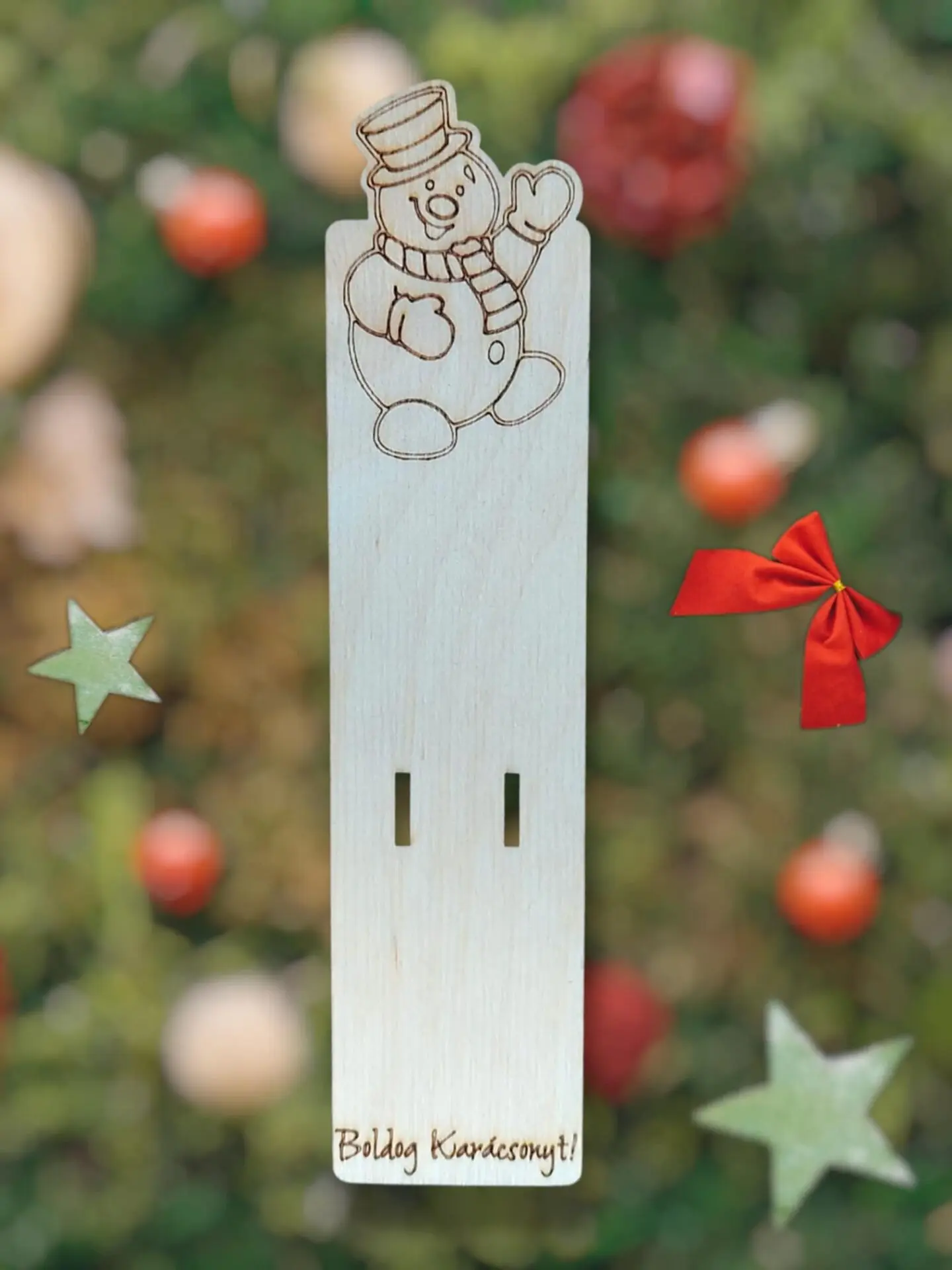 Lepd meg szeretteidet egy igazán különleges aprósággal! Ez a bájos hóemberes fa csokitartó nemcsak kedves és ünnepi ajándék, hanem praktikus is — miután a csokit elmajszolták, könyvjelzőként tovább használható.