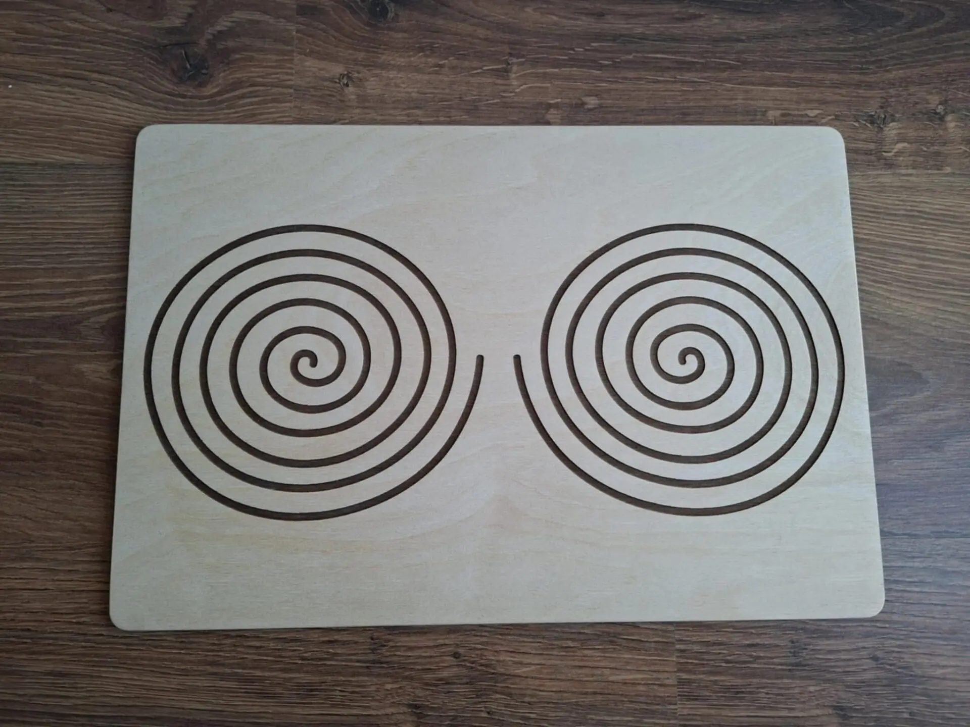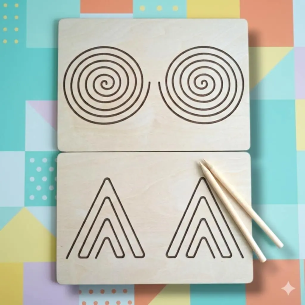 Ez a fejlesztő természetes fából készült eszköz hatékony segítséget nyújt a jobb és bal agyfélteke együttműködésének fejlesztésében. A táblákon található szimmetrikus spirál- és vonalvezetési minták arra ösztönzik a gyermeket, hogy mindkét kezét egyszerre használja, ezáltal támogatva az idegrendszeri érés folyamatát.