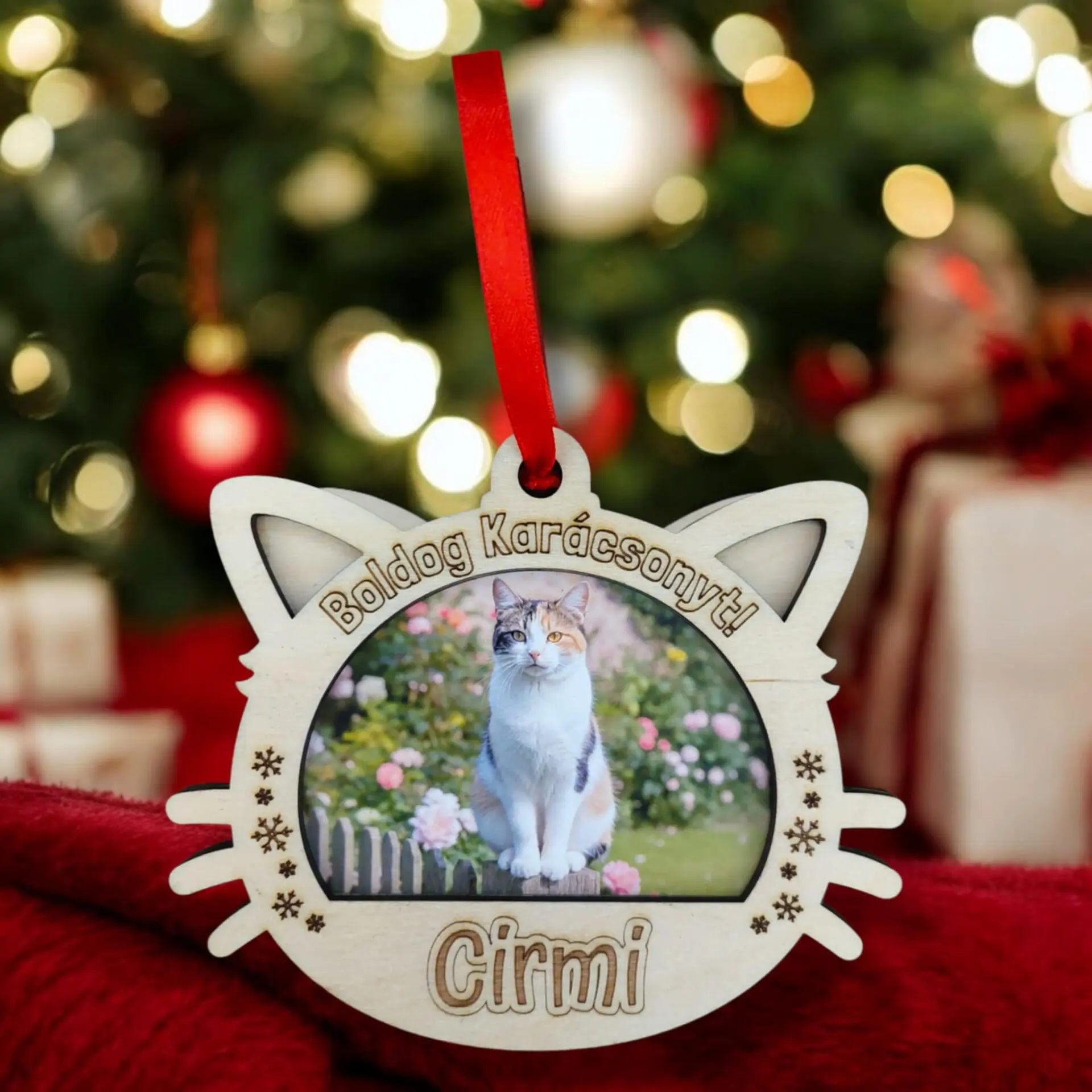 A Macskás neves-fényképes dísz pontosan arra készült, hogy a karácsonyfa alatt (és rajta) helyet kapjon az, aki a mindennapjaid része. A díszre nemcsak egy fotó kerül, hanem a cicád neve is — így minden évben mosolyt, néha meghatottságot, mindig szeretetet fogsz érezni, amikor ránézel. 🐾❤️