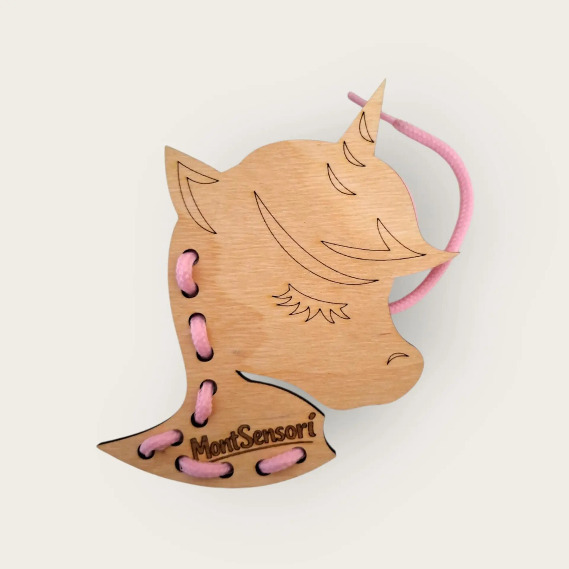 Montessori fűzős fa játék – unikornis 13,6 cm
