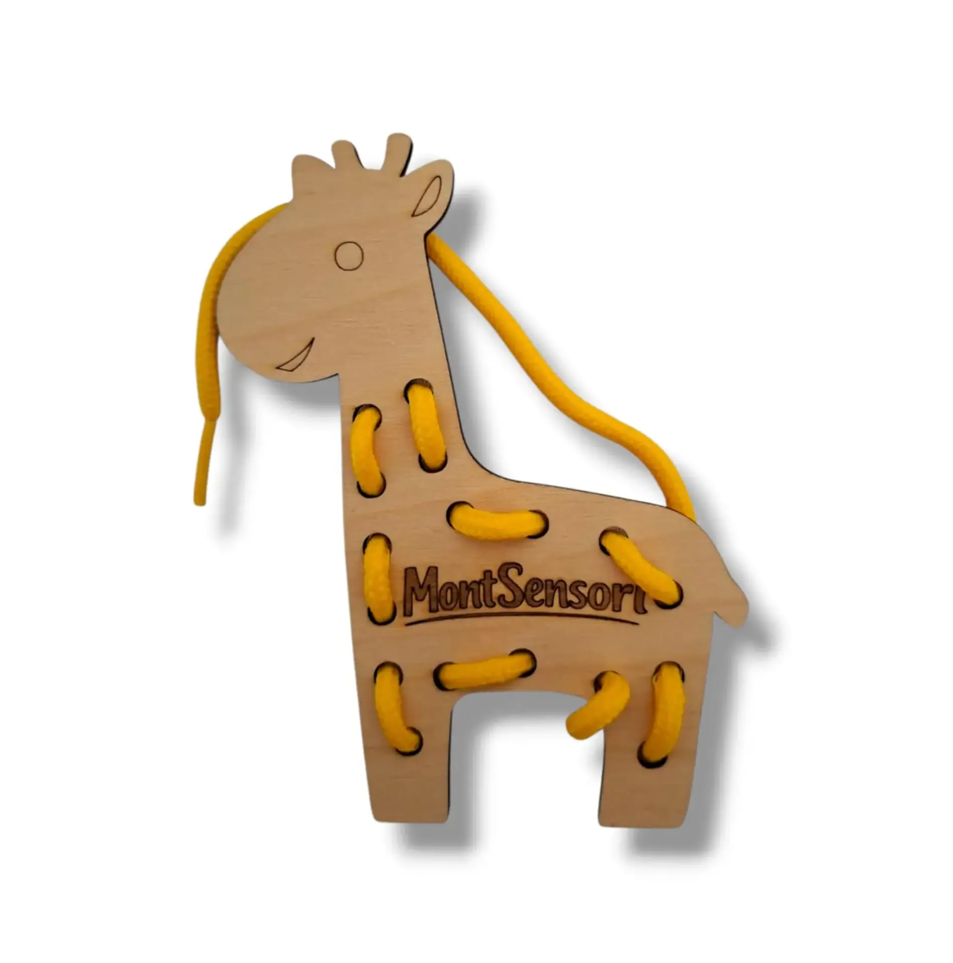 Montessori fűzős fa játék – zsiráf 12,5 cm