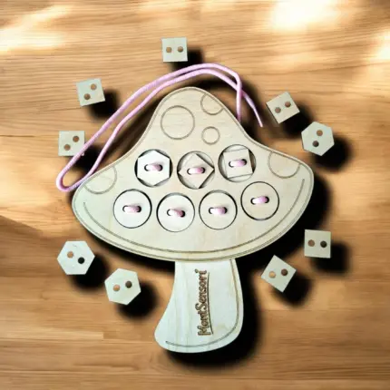 Fa fűzögetős fejlesztő játék – Gomba alakban 21 cm