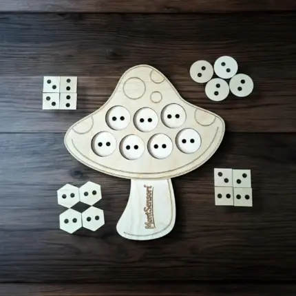 Fa fűzögetős fejlesztő játék – Gomba alakban 21 cm mennyiség