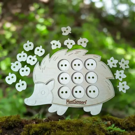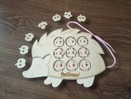 Fa fűzögetős fejlesztő játék – Süni alakban 21 cm