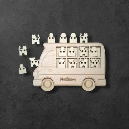 Fa fűzögetős fejlesztő játék – Busz alakban 22 cm mennyiség